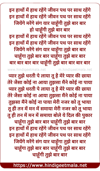 Lyrics of In Haatho Me Haath Rahege - इन हाथों में हाथ रहेंगे
