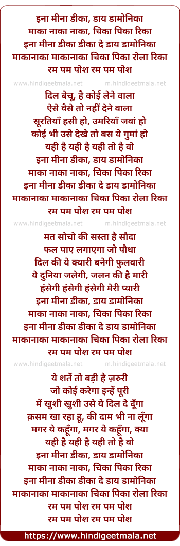 Lyrics of Eenaa Meena Deeka Daai Daamonika (Male Version) - इना मीना डीका, डाय डामोनिका