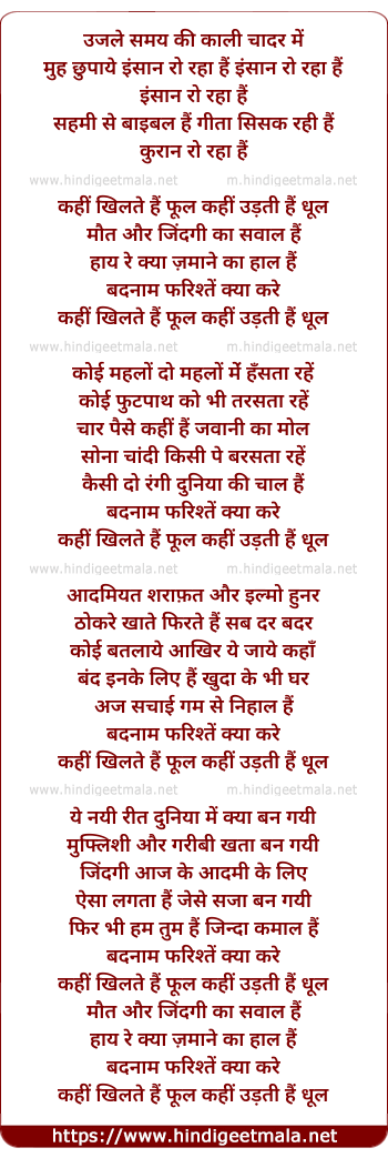 Lyrics of Insaan Ro Rha Hai, Badnam Farishte Kya Kare - इंसान रो रहा है, बदनाम फ़रिश्ते क्या करे