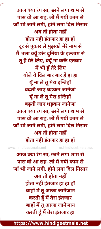 aaj kya rang sa, chhane laga shaam se