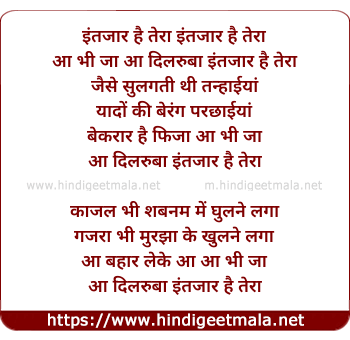 Lyrics of Intezaar Hai Tera - इंतजार है तेरा