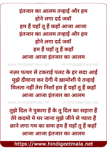 Lyrics of Intezar Ka Aalam Tanhayi Aur Hum - इंतजार का आलम तन्हाई और हम