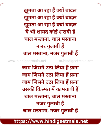 Lyrics of Intoxicated - झूमता आ रहा हैं क्यों बादल