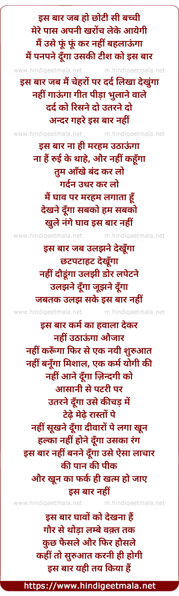Lyrics of Is Baar Nahi - इस बार जब हो छोटी सी बच्ची