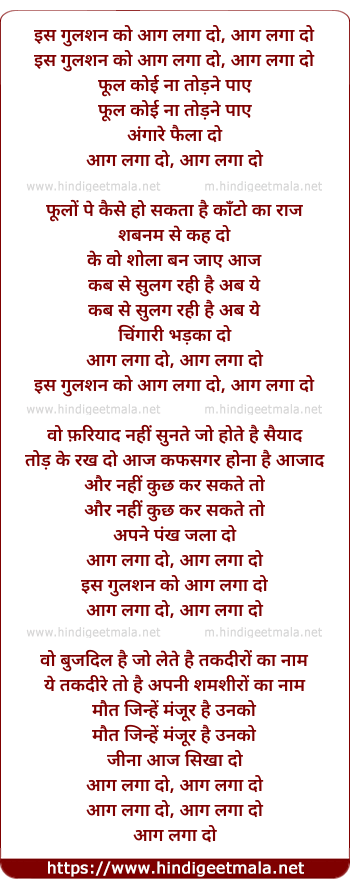 Lyrics of Is Gulshan Ko Aag Laga Do - इस गुलशन को आग लगा दो