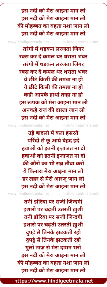 Lyrics of Is Nadi Ko Mera Aaina Maan Lo - इस नदी को मेरा आइना मान लो