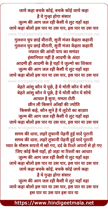 Lyrics of Jaye Kaha Bolo Is Paar Ya Us Paar - जाये कहा बोलो इस पार या उस पार