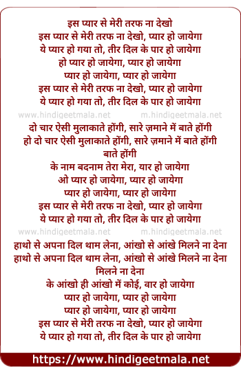 iss pyar se meri taraf naa dekho, pyar ho jayega ye