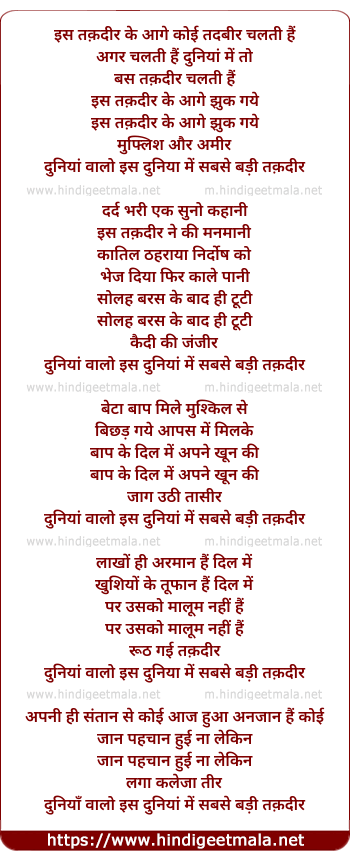 Lyrics of Is Taqdir Ke Aage Koi Tadbeer Chhalti Hai - इस तक़दीर के आगे कोई तदबीर चलती हैं