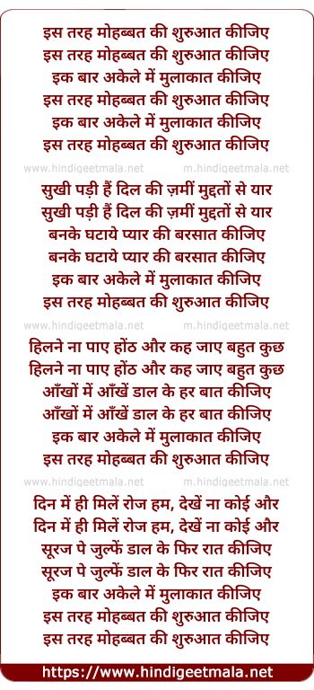 Lyrics of Is Tarah Mohabbat Ki Shuruat Kijiye - इस तरह मोहब्बत की शुरुवात कीजिए