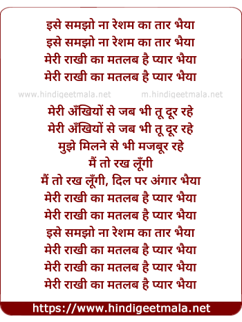 Lyrics of Ise Samjho Na Resham Ka Taar (Sad) - मेरी अँखियों से जब भी तू दूर रहे