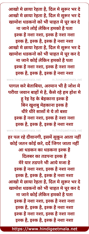 Lyrics of Ishk Hai Nasha Nasha - इश्क है नशा नशा