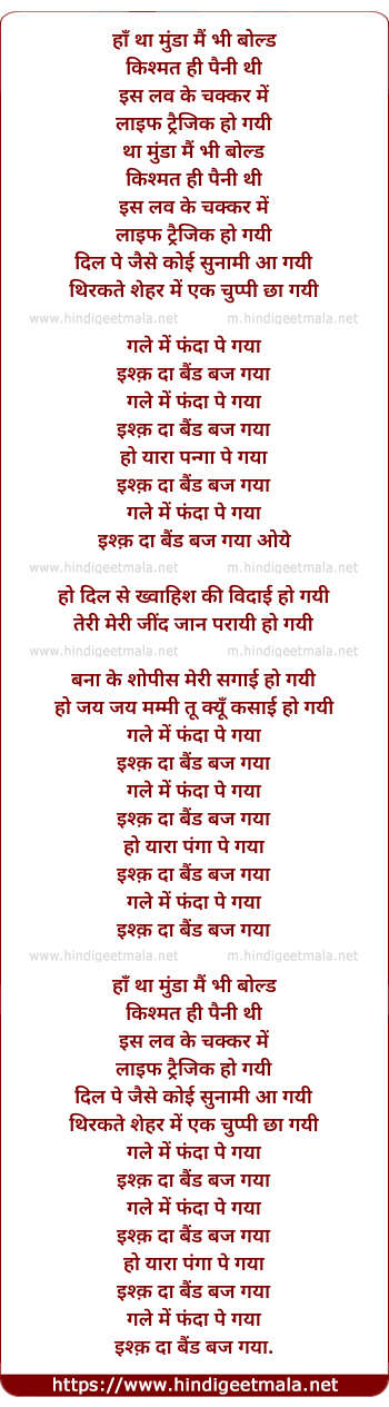 Lyrics of Ishq Daa Band - इश्क दा बैंड