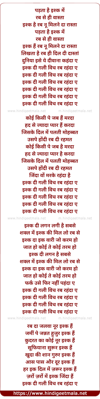 Lyrics of Ishq Di Gali - पड़ता है इश्क में