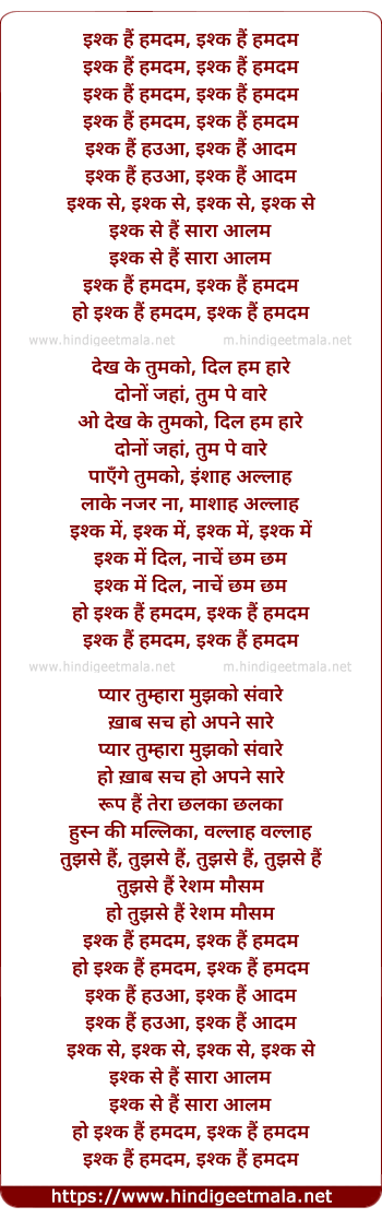 Lyrics of Ishq Hai Humdum - इश्क हैं हमदम, इश्क हैं हमदम