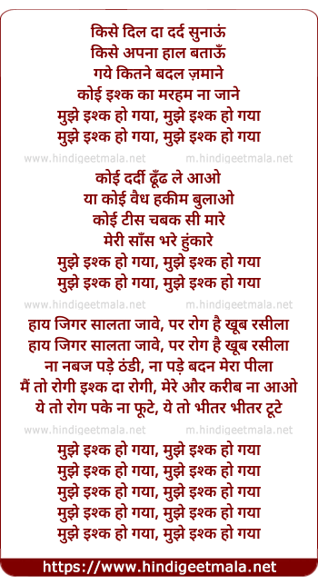 mujhe ishq ho gaya, mujhe ishq ho gaya