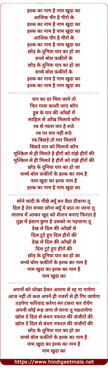 Lyrics of Ishq Ka Naam Hai (Happy Version) - इश्क का नाम है नाम खुदा का