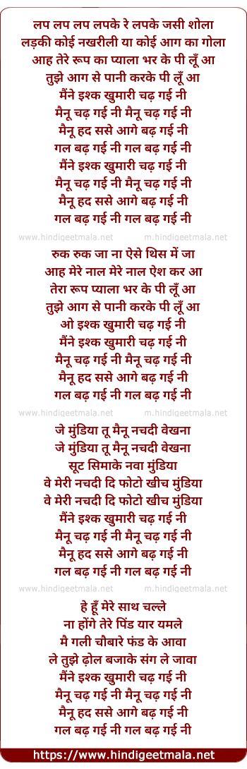 Lyrics of Ishq Khumari Chad Gayi Ni - इश्क खुमारी चढ़ गई नी