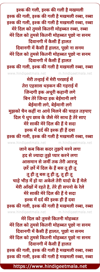 Lyrics of Ishq Ki Gali Hai Makhmali - इश्क की गली, इश्क की गली है मखमली