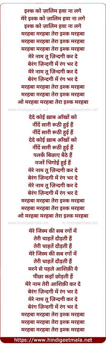 Lyrics of Ishq Ko Jalim Hawa Na Lage (Marhaba Marhaba) - इश्क को ज़ालिम हवा ना लगे