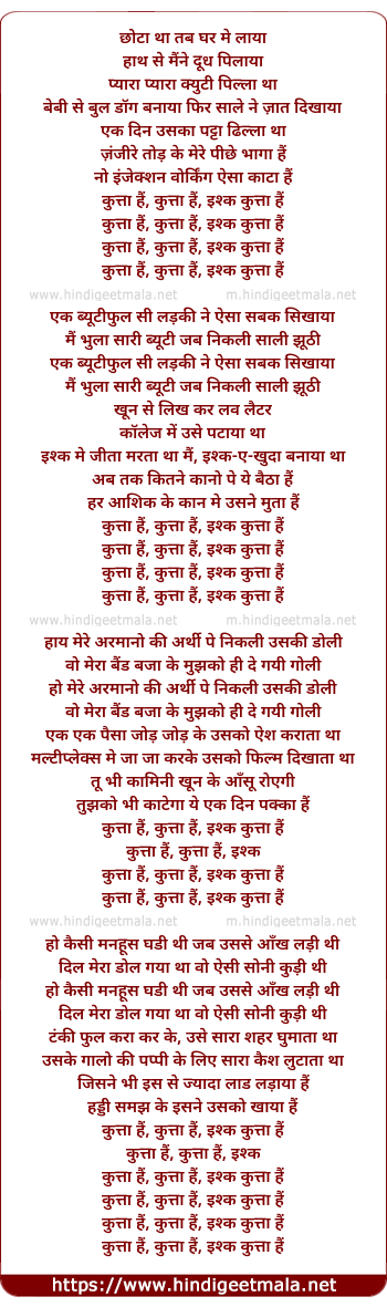 Lyrics of Ishq Kuta Hai - इश्क कुत्ता है