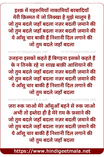 jo tum badle jaha badla nazar badli zamane ki