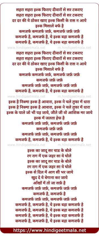 kamjarf hai, kamjarf hai, ye ishk bada kamjarf hai