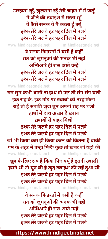 Lyrics of Ishq Tere Jalwe Har Pahar Diil Me - इश्क तेरे जलवे हर पहर दिल में