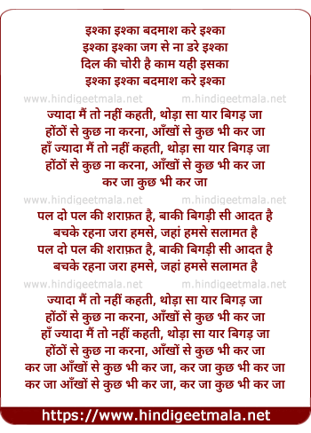 zyada mai to nahi kehti, thoda sa yaar bigad ja