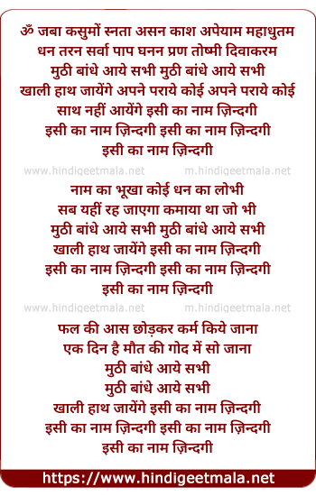 Lyrics of Isi Ka Naam Zindagi - इसी का नाम ज़िन्दगी