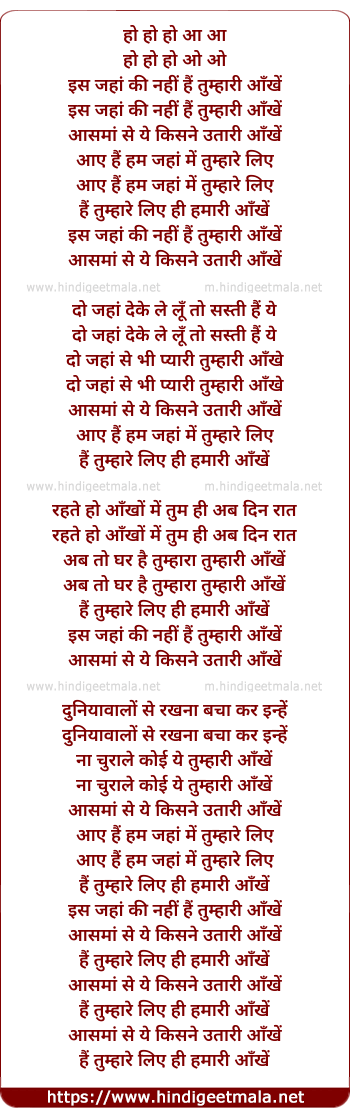 Lyrics of Iss Jahan Kee Nahee Hain Tumharee Aankhe - हो हो हो आ आ