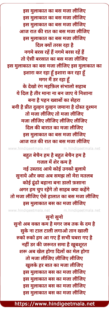 Lyrics of Iss Mulakat Kaa Bas Maja Lijiye - इस मुलाकात का बस मजा लीजिए