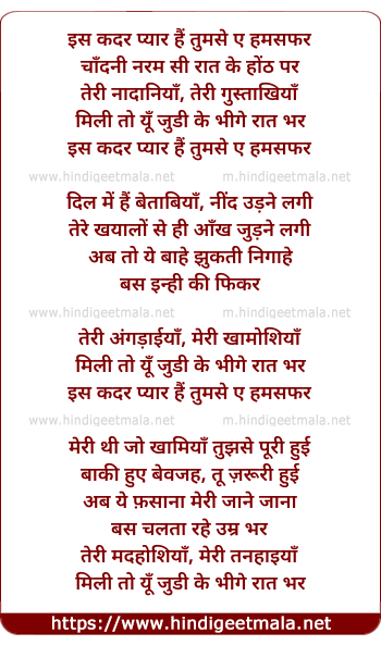 Lyrics of Iss Qadar Pyaar Hai - इस कदर प्यार हैं