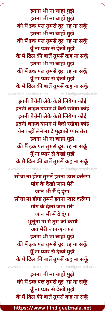 Lyrics of Itana Bhi Na Chaaho Mujhe - इतना भी ना चाहों मुझे