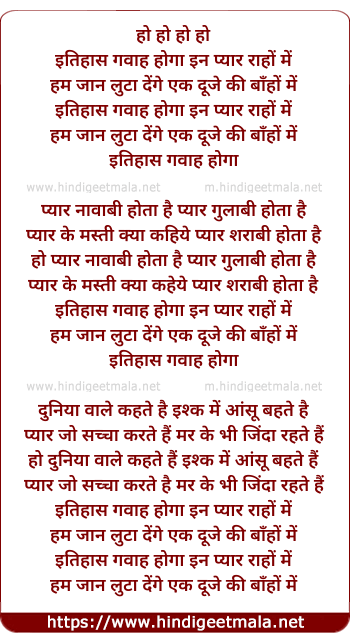 Lyrics of Itihaas Gawah Hoga, In Pyaar Ki Raaho Me - इतिहास गवाह होगा, इन प्यार राहों में