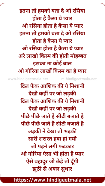 Lyrics of Itna To Humko Bata De O Rasiya - इतना तो हमको बता दे ओ रसिया