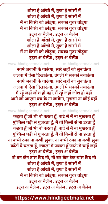 Lyrics of Its A Chalange - इट्स अ चैलेंज