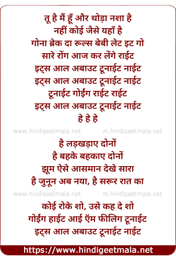 Poetic Translation - Lyrics of It'S All About Tonight - इट्स आल अबाउट टूनाईट