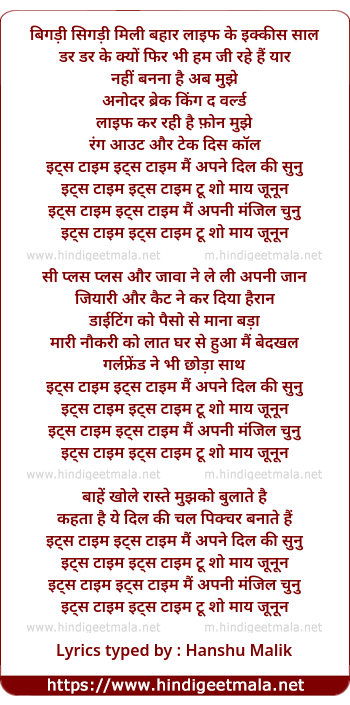 Lyrics of Its Time - इट्स टाइम