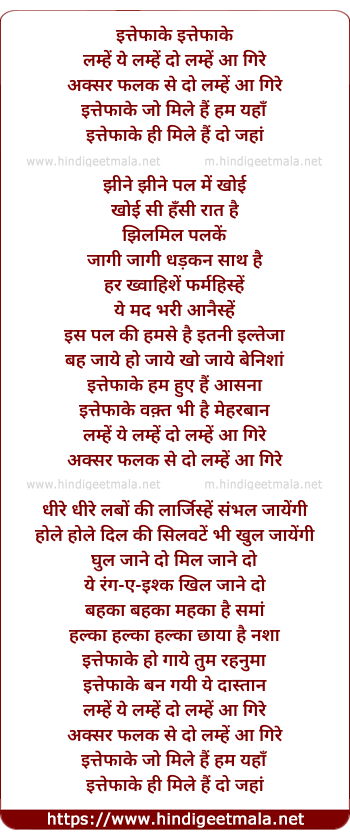 Lyrics of Ittefaqan Hum Hue Hain - Valentine Waltz - इत्तेफाके इत्तेफाके