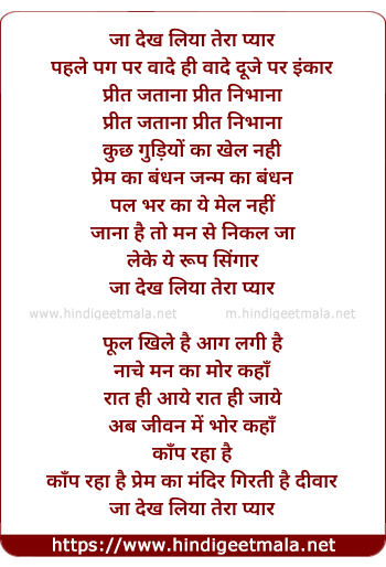 Lyrics of Ja Dekh Liya Tera Pyar - जा देख लिया तेरा प्यार