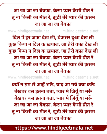 Lyrics of Ja Ja Ja Ja Bewafa - जा जा जा जा बेवफ़ा