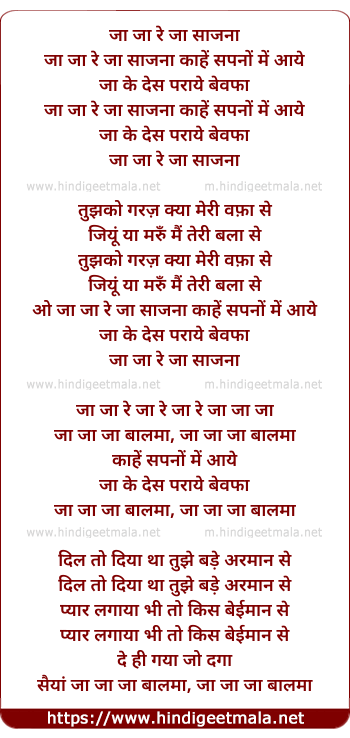 Lyrics of Ja Re Ja Re Sajana (Asha) - जा जा रे जा साजना