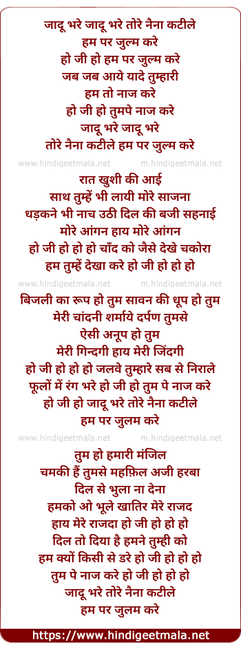 Lyrics of Jaadu Bhare Tore Naina Katile - जादू भरे तोरे नैना कटीले