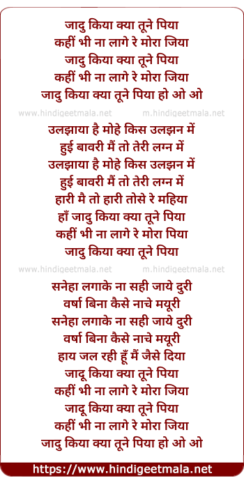 Lyrics of Jaadu Kiya Kya Tune Piya - जादु किया क्या तूने पिया