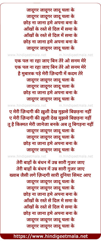 Lyrics of Jaadugar Jaadugar Jaadu Chalaake - जादूगर जादूगर जादू चलाके