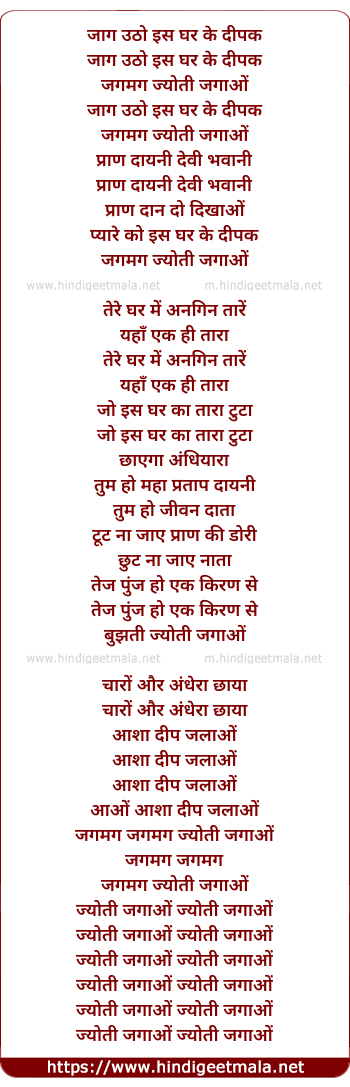 Lyrics of Jaag Utho Is Ghar Ke Deepak - जाग उठो इस घर के दीपक