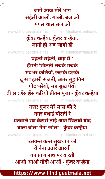 Lyrics of Jaage Aaj More Bhaag Sahili Aao Gaao Bajaao - जागे आज मोरे भाग