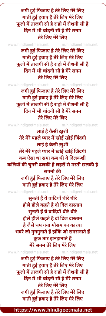 Lyrics of Jagi Hui Fizaen Hai Tere Liye Mere Liye - जगी हुई फिजाए है तेरे लिए मेरे लिए