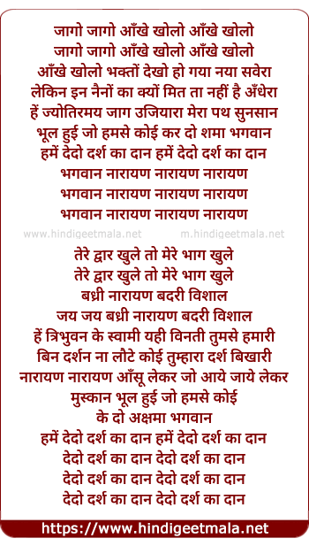 Lyrics of Jaago Jaago Ankhe Kholo - जागो जागो आँखे खोलो